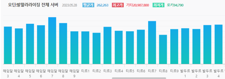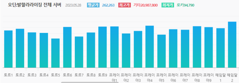 2023년 5월29일기준 넷째 주 오딘 발할라:라이징 전 서버 시세표입니다.