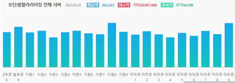 2023년 5월29일기준 넷째 주 오딘 발할라:라이징 전 서버 시세표입니다.