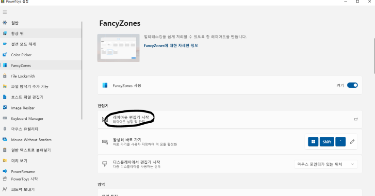 3.FancyZones 누르세요